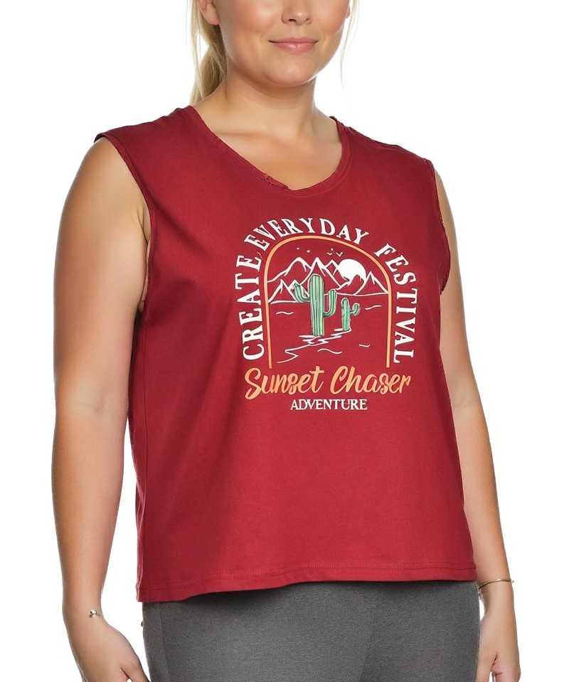 Дамски потник от памук в червен цвят с интересен принт на предната част. Горната дреха е с къс ръкав и кръгло деколте. Подходящ за ежедневни дейности и забавления на открито.