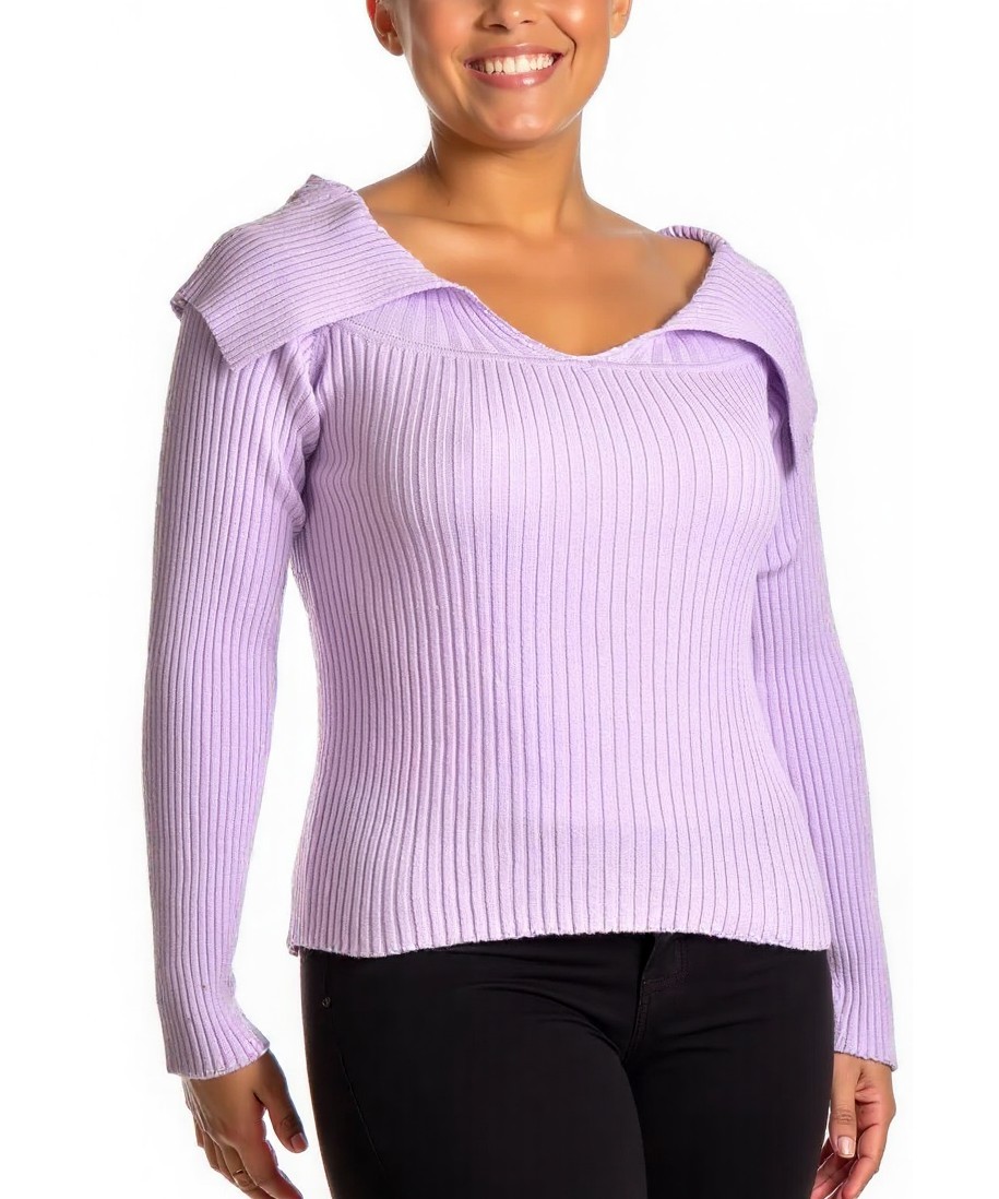 Елегантен дамски памучен пуловер в светло лилав нюанс, фино рипсено плетиво с вертикални линии, с широка падаща яка и прилепнала кройка. Мек, дишащ и удобен за всекидневно носене. Пране в машина до 30°C.