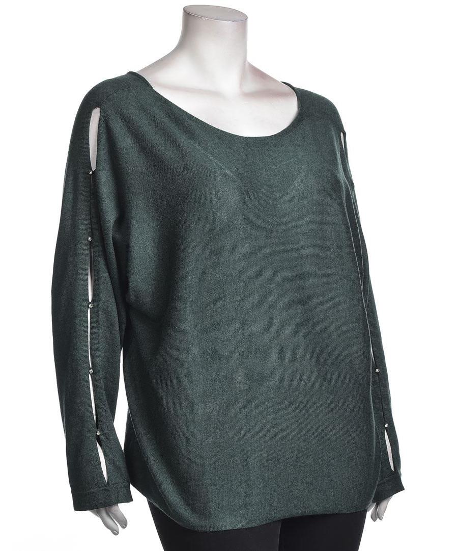 Елегантен дамски пуловер от вискоза в тъмнозелен цвят. Свободна кройка, мека и дишаща материя, рязани ръкави с декоративни перли и цепки. Подходящ за всеки ден и за изискано облекло. Лесна поддръжка.!!