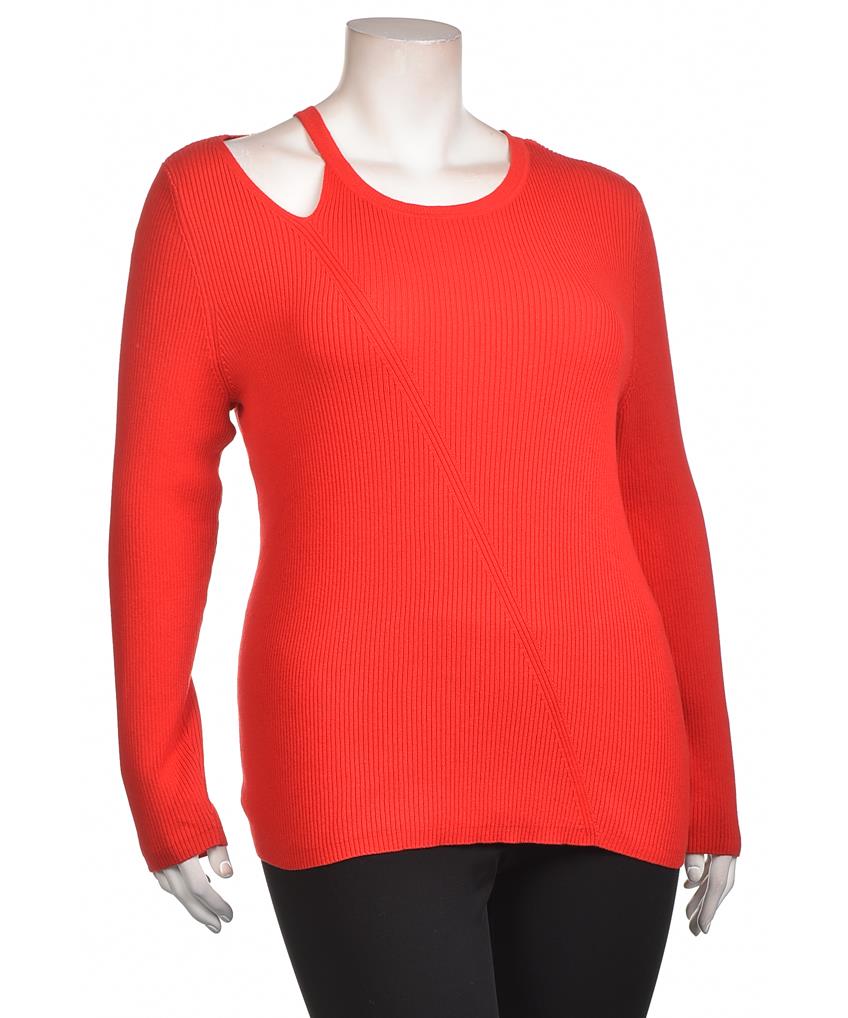 Дамски памучен пуловер в ярко червен цвят, рипсен плат, дълги ръкави и асиметрично деколте с ефектен прорез и презрамка. Удобна, еластична кройка за всекидневен стил. Изработен от 100% памук. Лесен.