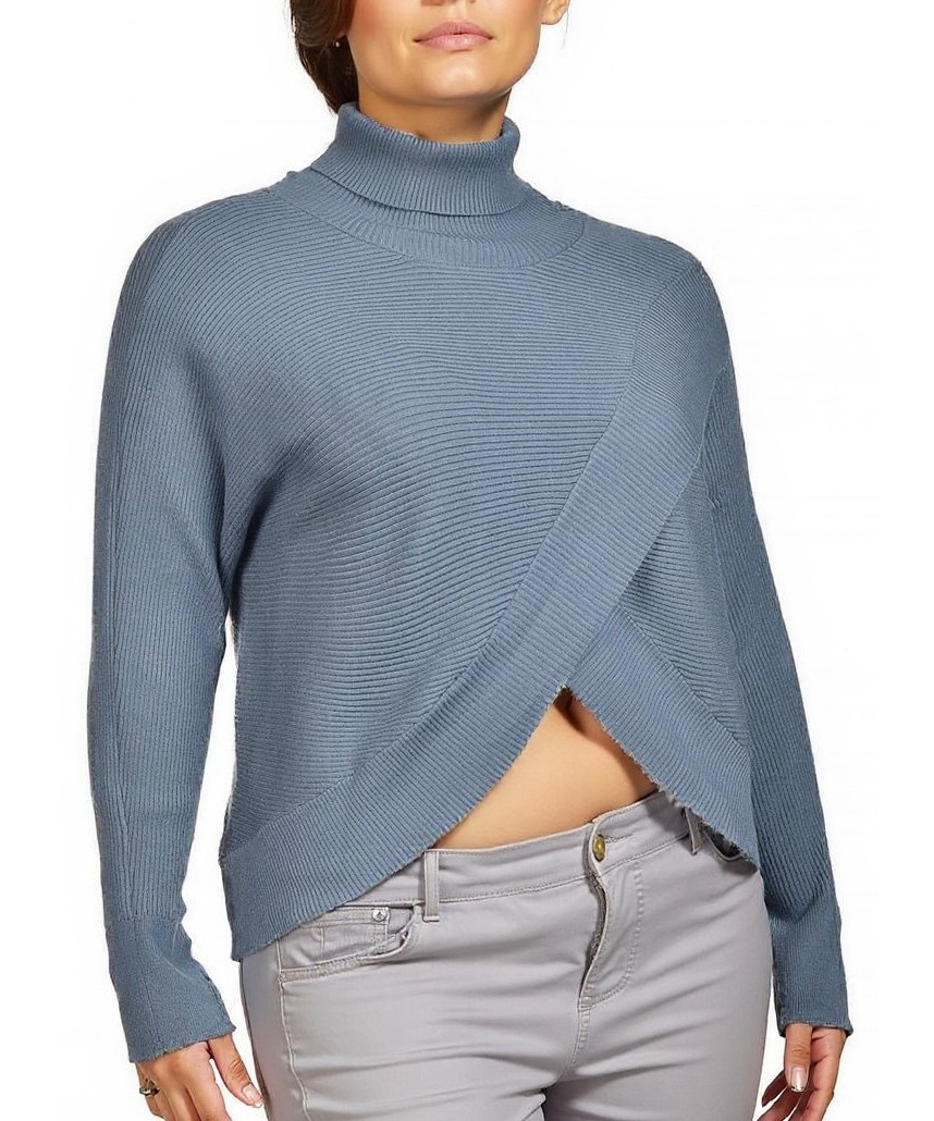 Модерен дамски пуловер от вискоза с висока яка и преплетен преден ръб. Мека, релефна плетка и дълги ръкави за уют и стил. Подходящ за ежедневна и по-шик визия. Отлично пасва с дънки или пола. В 3 цв.