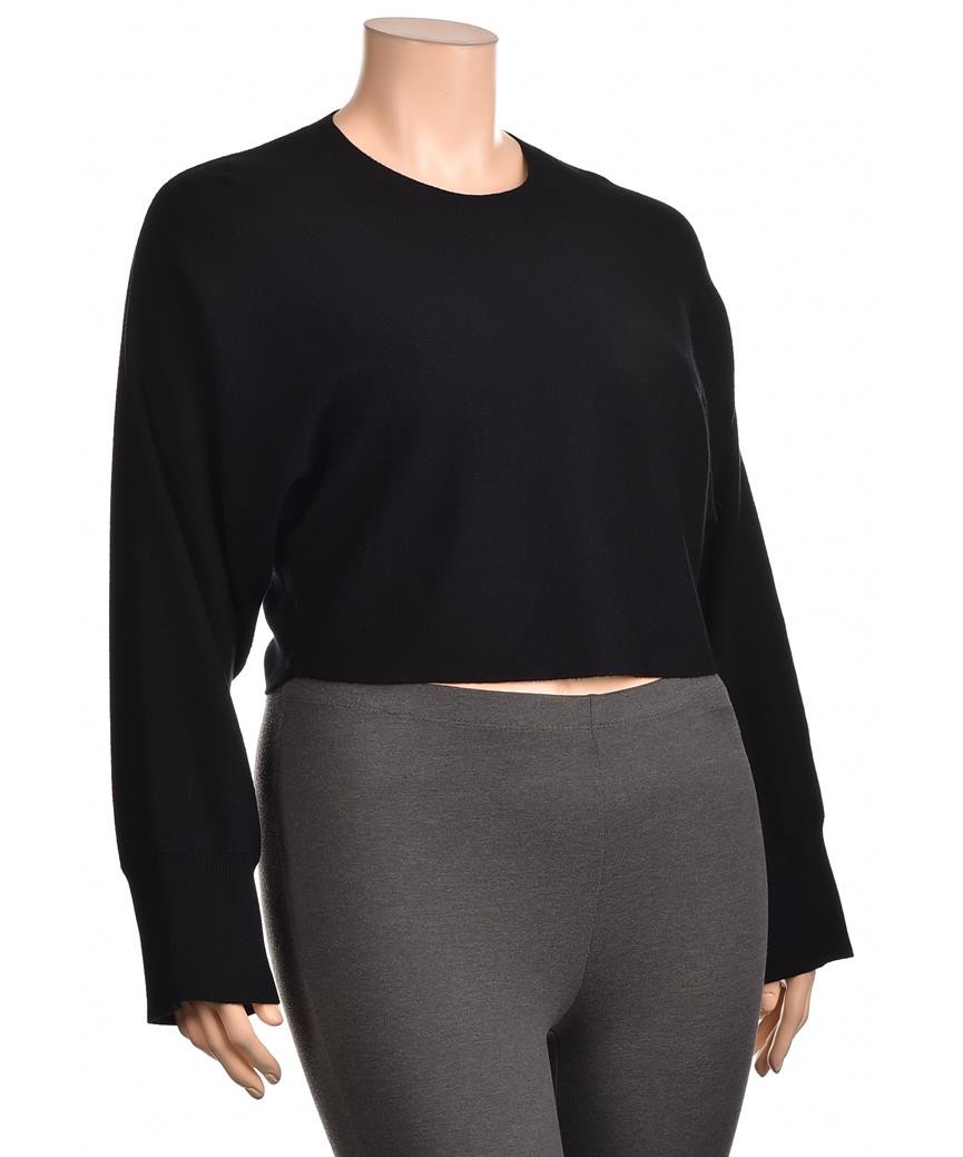 Дамски пуловер от вискоза в черно, къс модел до талията с кръгло деколте и дълги ръкави. Мек, дишащ и елегантен – подходящ за всекидневно носене и стилни комбинации. Лесна поддръжка, подходящ за офиса.