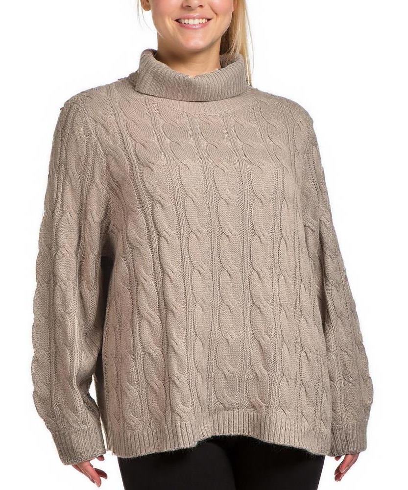 Дамски плетен пуловер в бежово, с плетеници и висока поло яка. Свободен силует, дълги ръкави и рипс ластик на маншети и долна част. Мек, топъл и лесен за комбиниране. Подходящ за офис и хладни вечери.