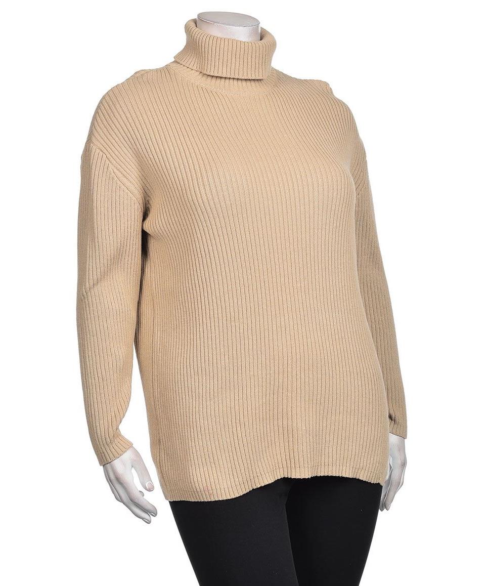 Елегантен дамски пуловер от 100% памук в топъл бежов нюанс. Рипсен плет, висок врат (поло) и дълги ръкави за уют и свободно падане. Подходящ за ежедневен стил и комфорт през прохладни дни. Лесна грижа