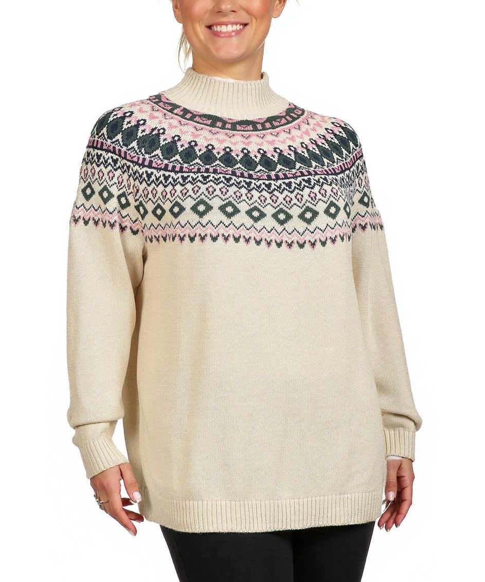 Дамски памучен пуловер с високо деколте и традиционен етно мотив по раменете в розово и зелено. Свободна кройка, дълги ръкави и рипс ластици на маншетите и долния ръб. Топъл и удобен. Отличен избор!!!