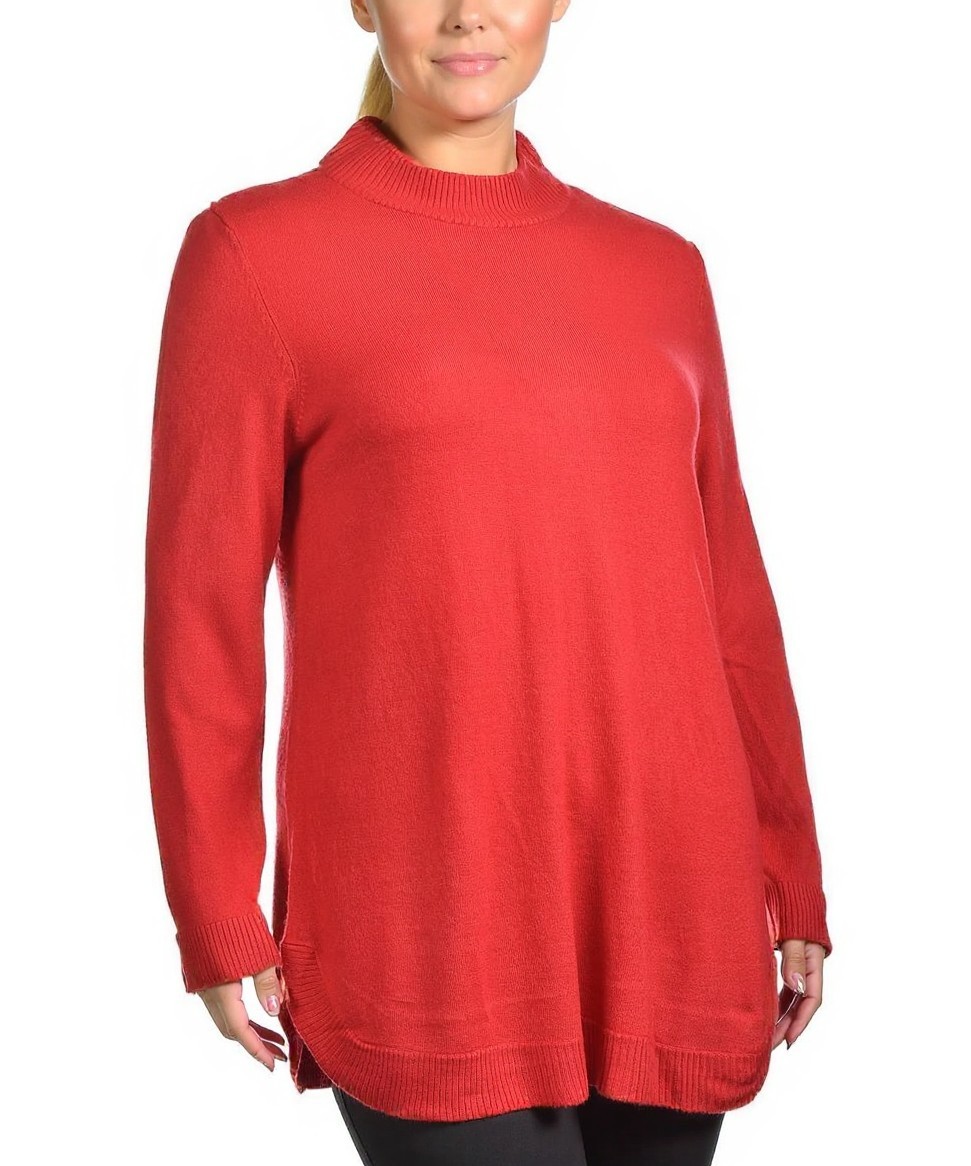 Червен дамски пуловер с свободна кройка, дълги ръкави и рипсена яка, маншети и подгъв. Мек плет, странични цепки и леко удължен силует—удобен и елегантен избор за всеки ден. Подходящ за офис и уикенд.
