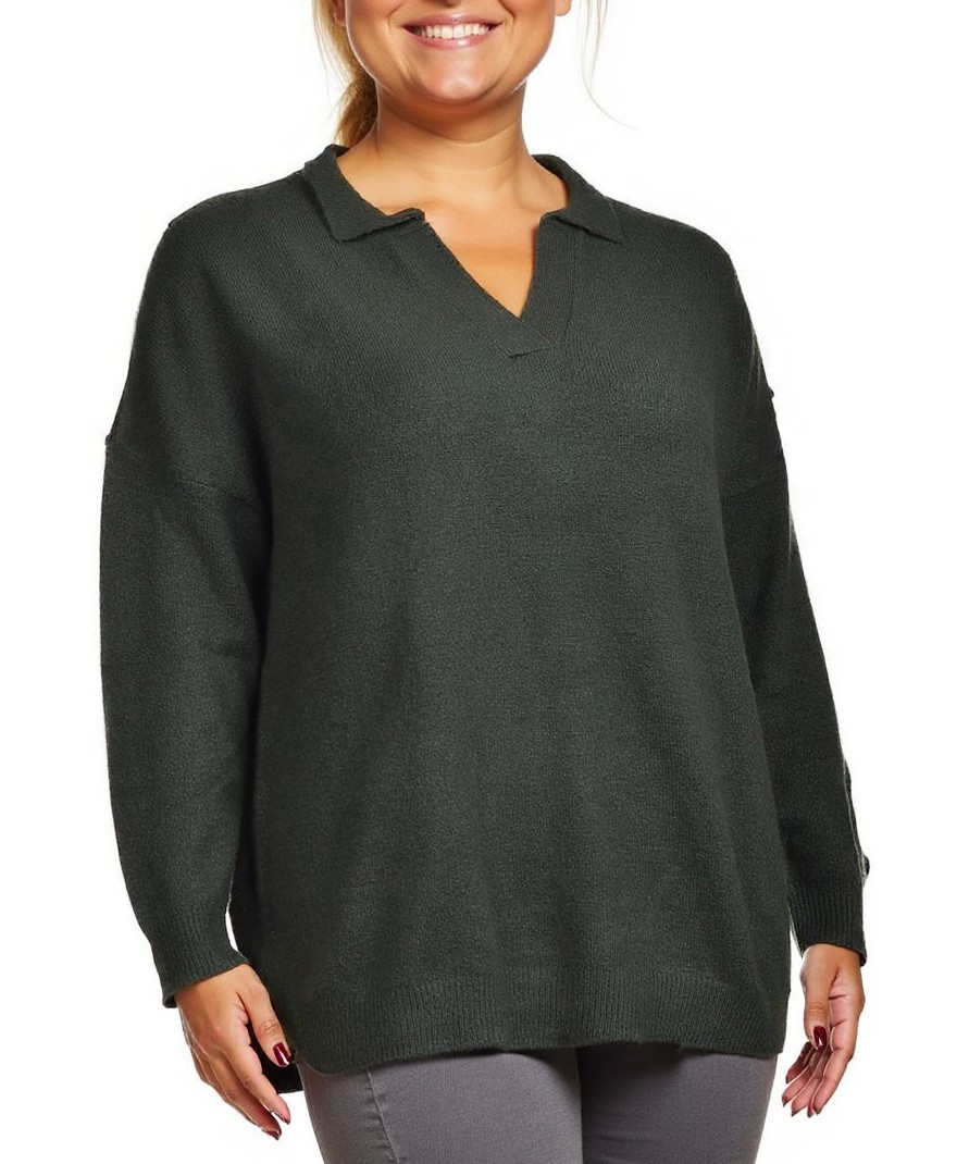 Дамски пуловер в тъмнозелено, свободен силует с V-образно деколте и яка. Дълги ръкави, мека плетка и удобна дължина. Идеален за ежедневно носене и топъл зимен стил. Подходящ за офиса и уикенда Грижа: 30C