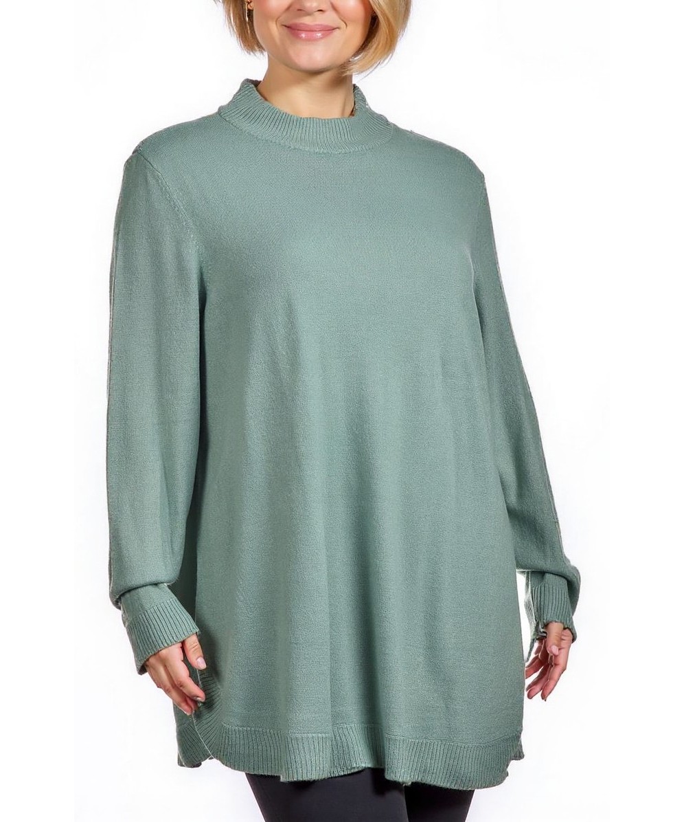 Елегантен дамски пуловер в мека, фина плетка. Свободен, удължен силует с висока права яка и ластични маншети. Идеален за ежедневие и уютни зимни визии. Нежен ментолов цвят. Подходящ за офис и ежедневен стил Лека.