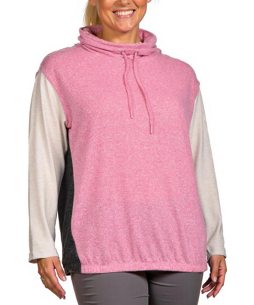 Дамският пуловер е стилен и удобен модел в розов цвят с дълги ръкави в контрастен светъл нюанс. Материята е мека и приятна на допир, а дизайнът включва практична качулка с връзки. Подходящ за ежедневна употреба.