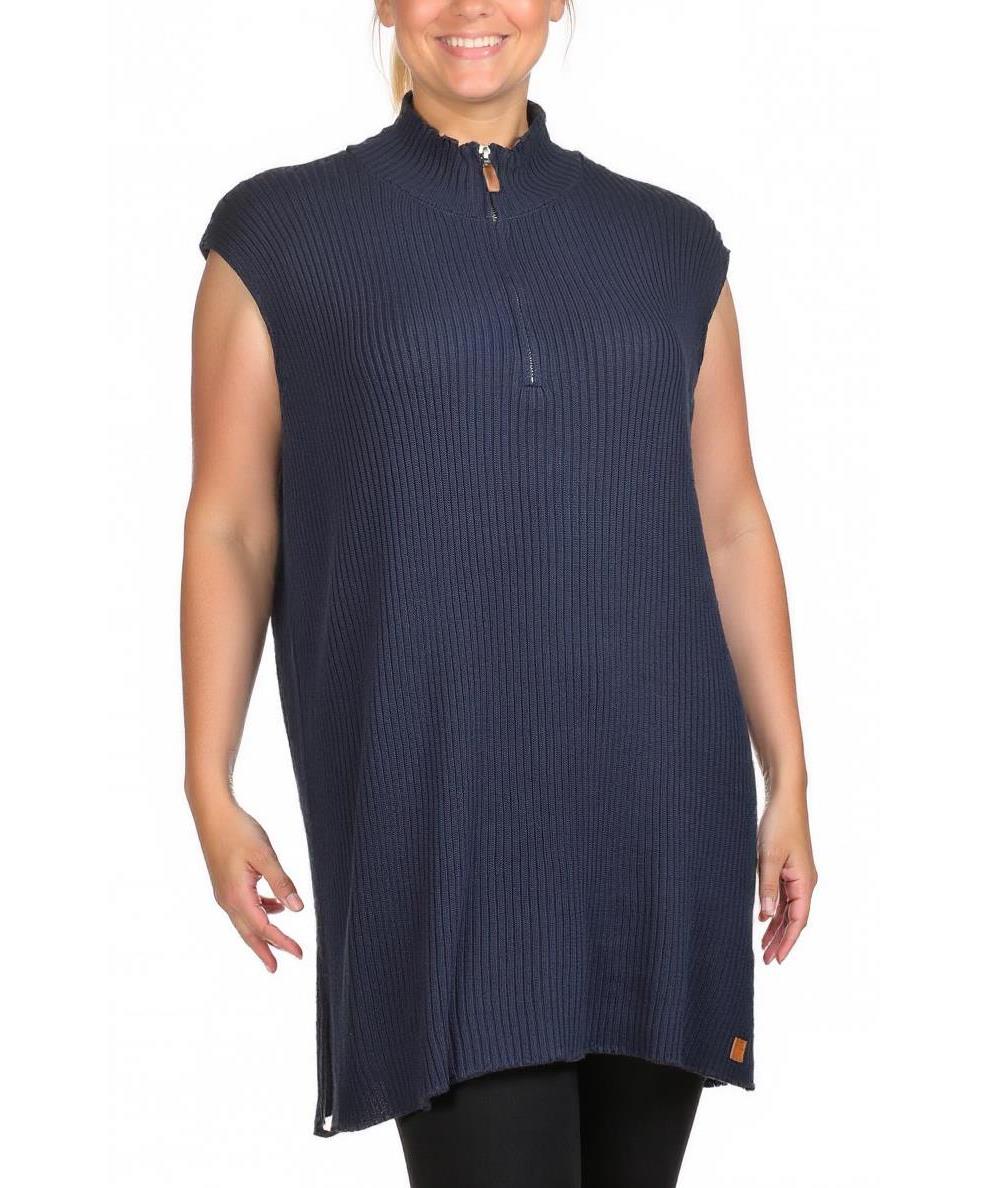 Удобен дамски пуловер от 100% памук, свободна кройка, без ръкави, фино ребриста плетка и къс цип на деколтето. Идеален за слоеве и ежедневен стил. Нежен към кожата, лесен за поддръжка. Машинно пране 40