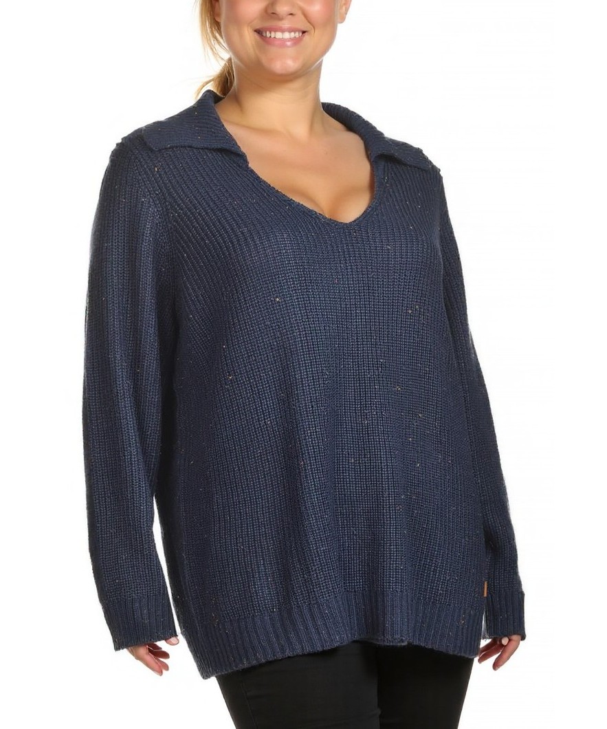 Удобен дамски пуловер в тъмносин цвят с V-образно деколте и отворена яка. Свободна кройка, дълги ръкави и плътно плетиво за топлина. Универсален модел за ежедневие и офис. Мека смес от вълна и акрил.!