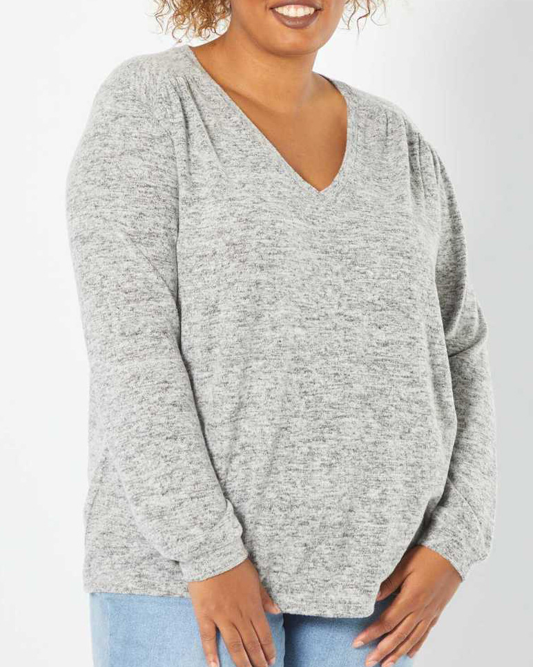 Мек дамски пуловер от вискоза с V-образно деколте и дълъг ръкав. Свободна кройка и ненатрапчив меланж за ежедневно носене. Комфортен и лесен за поддръжка. Подходящ за работа и уикенд, лесно комбиниране!!