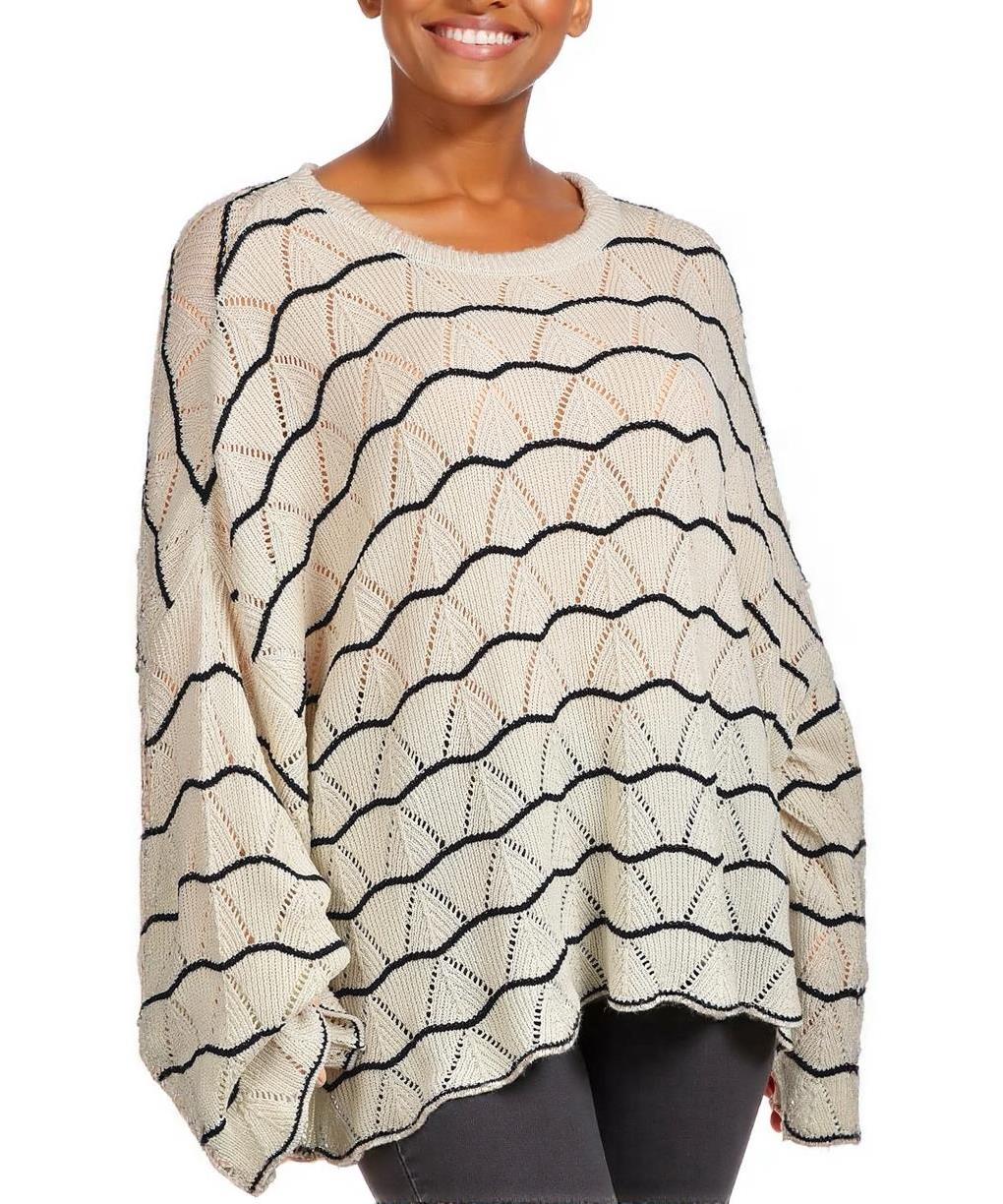Дамски памучен пуловер с широка, свободна кройка и ажурна плетка, с тъмни контрастни линии. Мек, дишащ и удобен за всеки ден, подходящ за сезонни преходи и ежедневни визии. Лесно се комбинира с дънки.