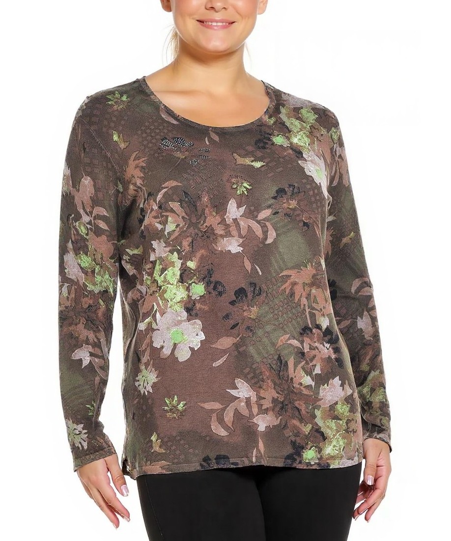 Елегантен дамски пуловер от вискоза с дълги ръкави и заоблена деколте. Мека, дишаща материя с флорален принт в земни тонове, подходящ за ежедневие и по-официални поводи. Лесна грижа и добро оформяне.