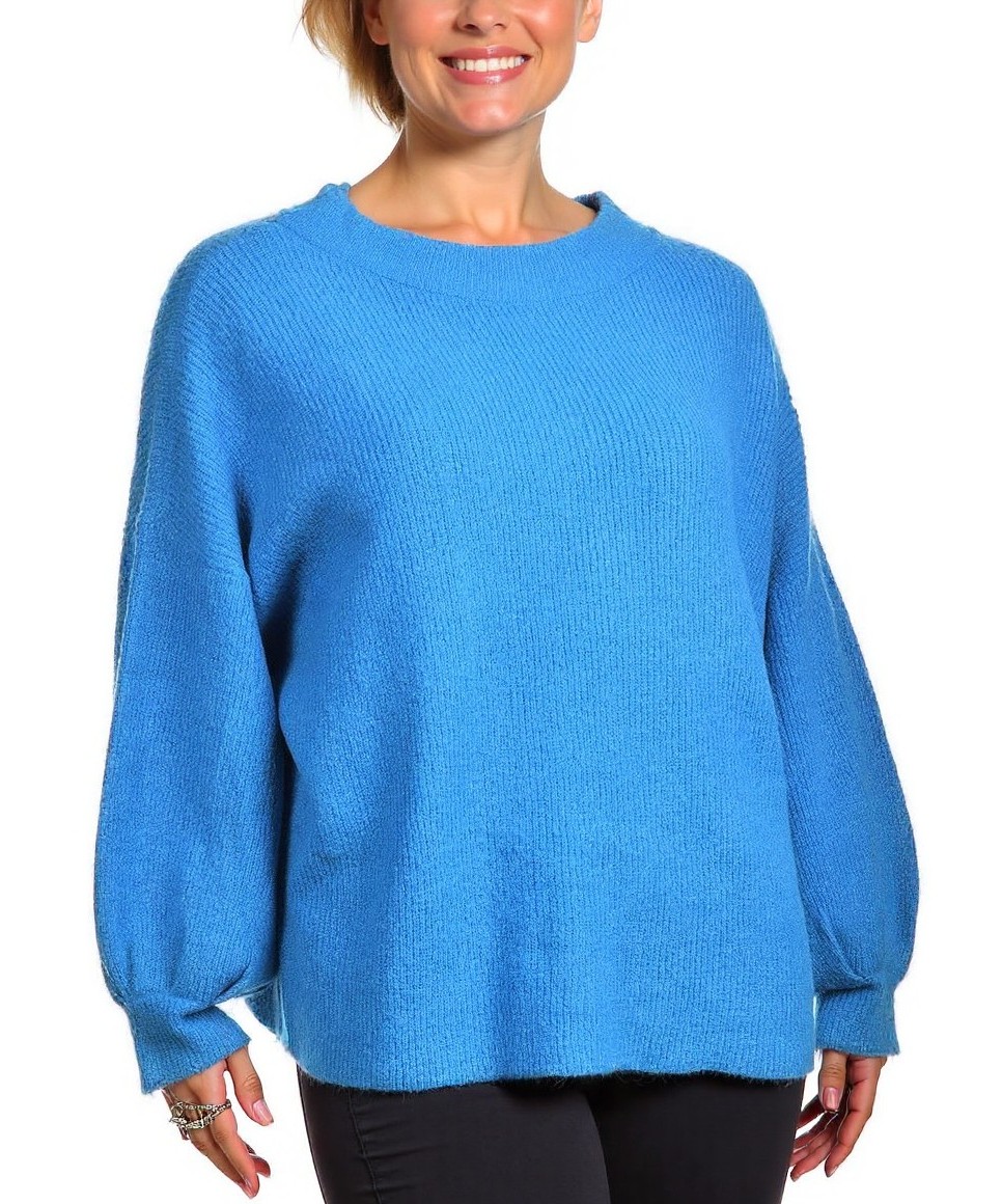 Стилен дамски пуловер в наситено синьо, мек и пухкав плетивен модел с широк свободен силует, падащи рамене и обемни ръкави. Подходящ за всеки ден и офиса. Лесна поддръжка, съвместим с дънки и поли. XL