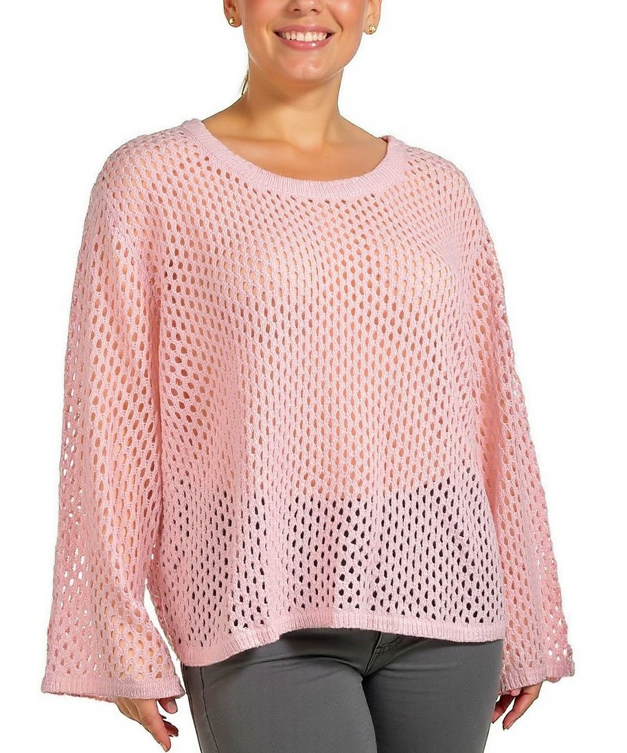 Дамски плетен пуловер в бледо розово с ефектен ажурен дизайн. Удобен и стилен, идеален за ежедневно носене. Свободна кройка с дълги ръкави и овално деколте, подходящ за всякакви поводи.
