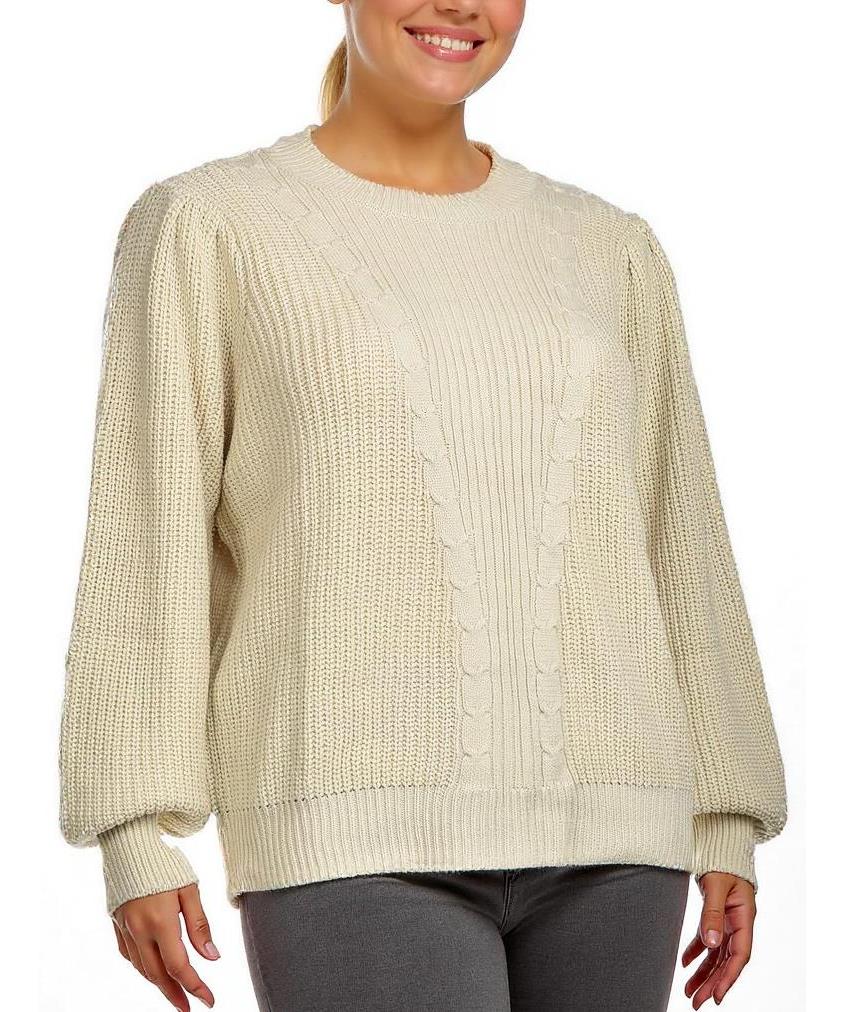 Мек дамски пуловер от 100% памук, с класическо плетиво и декоративни плитки отпред. Свободна кройка, дълги ръкави с ластик и кръгло деколте. Удобен, топъл и лесен за съчетаване. Перфектен за всеки ден.!