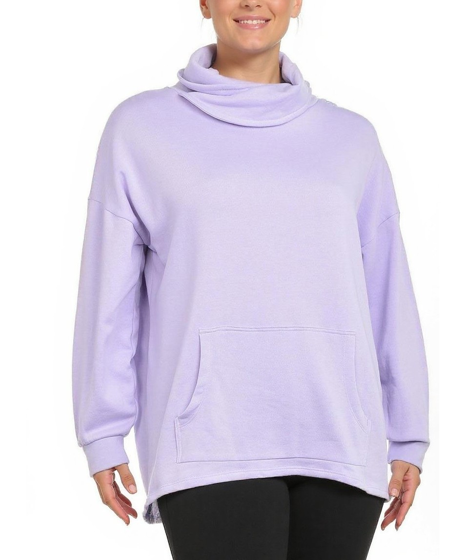 Дамски памучен суичър в нежно лилаво, свободен крой с висока яка, джоб кенгуру и рипсен маншет. Мек и уютен, идеален за всеки ден и релакс Стилна и практична изработка, лесна за поддръжка и комбинира