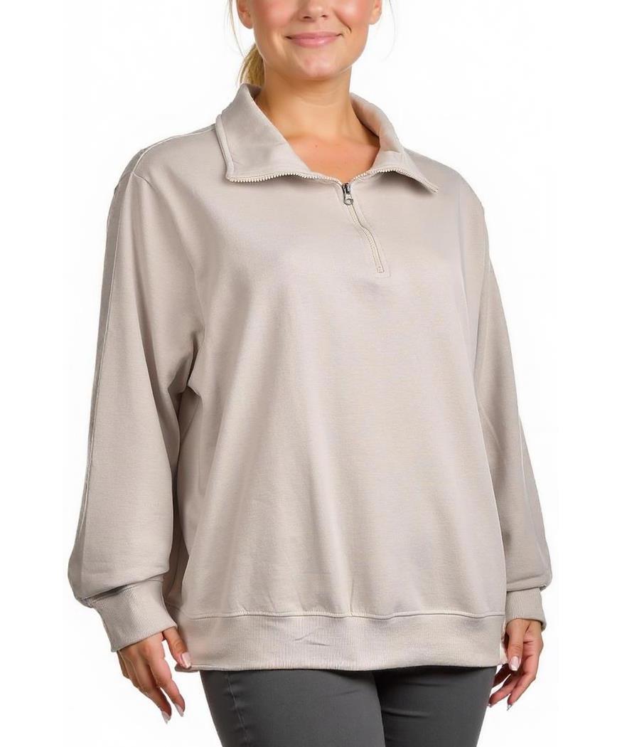 Дамски памучен суичър в неутрален бежов нюанс, с цип на висока яка, свободна кройка и дълги ръкави. Мек, удобен и дишащ – перфектен за ежедневие и свободно време. Лесна поддръжка налични размери S–XL.