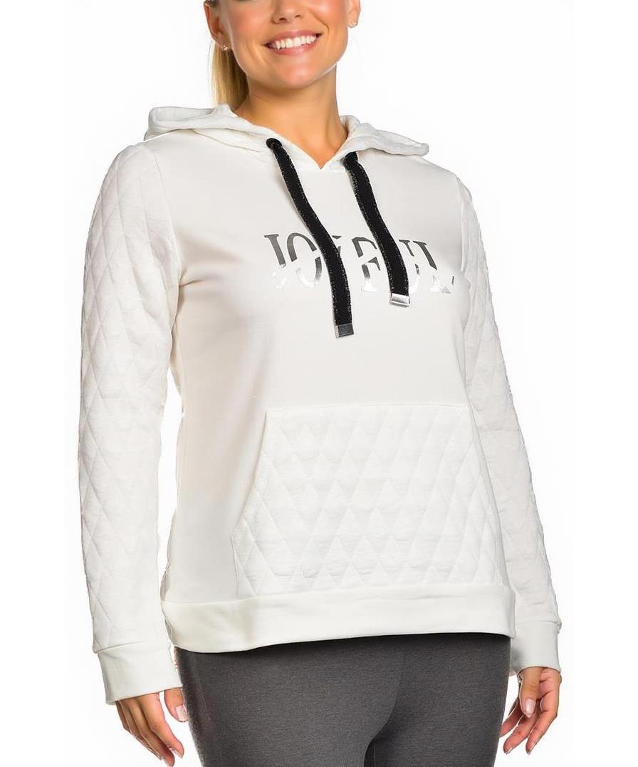 Дамски суичър от мек памук с релефни детайли, подходящ за ежедневието. Моделът има качулка и джоб тип кенгуру. Декориран е с елегантен принт отпред и контрастни връзки. Идеален за сезона.