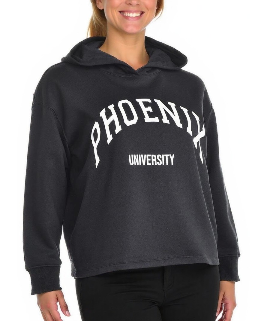 Дамски памучен суичър с качулка, меко и топло френско трико, свободна кройка и еластични маншети. Модерен универсален дизайн с принт "PHOENIX UNIVERSITY" за ежедневен комфорт. Лека, стилна и удобна!!!