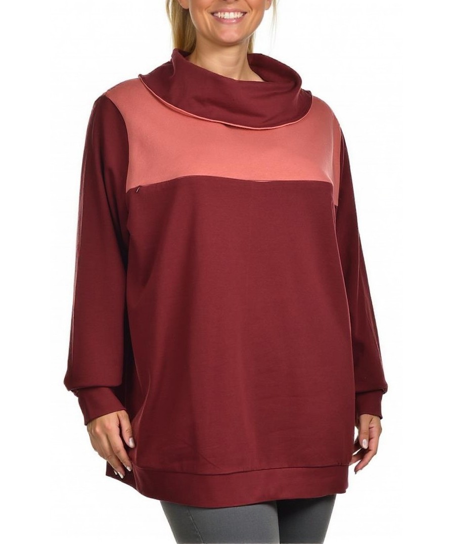 Мек дамски суичър за бременни от памук. Удобна, разкроена кройка, дълги ръкави и свободна талия за растящ корем. Елегантен двуцветен дизайн и висока, мека яка за комфорт. Практичен, лесен за поддръжка.