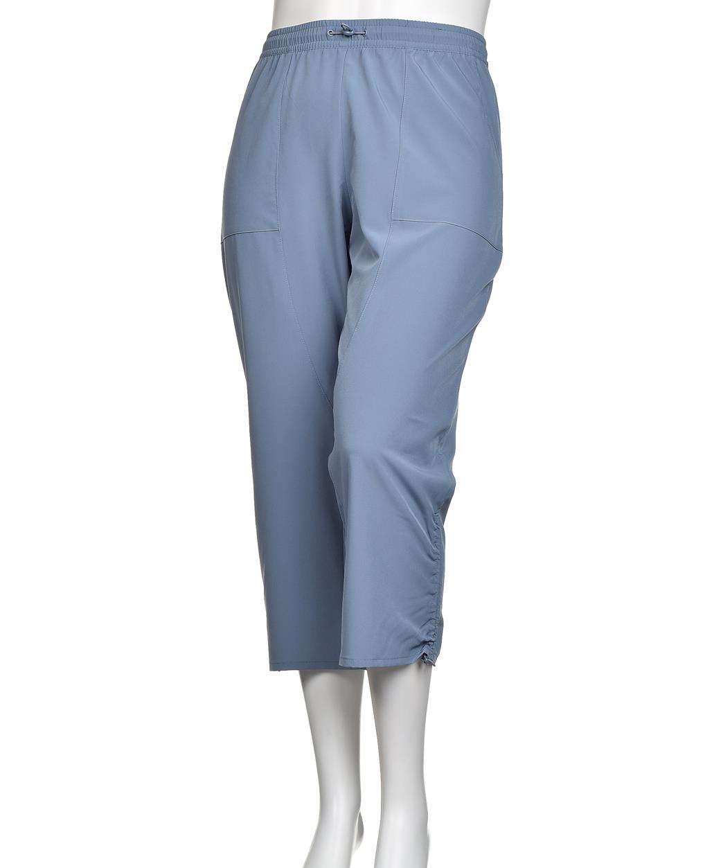Дамско долнище в светлосиньо от лек, еластичен плат. Модел 7/8 с ластична талия и връзка, предни джобове и дискретно събиране в крачола. Удобно и стилно за всекидневие. Практично за спорт и разходки..