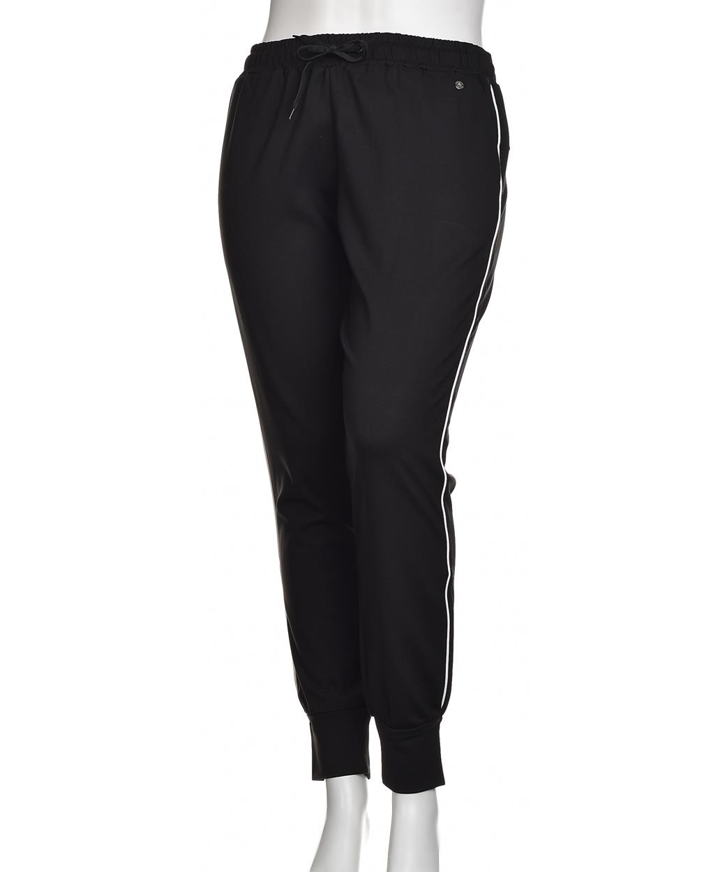 Дамско долнище от вискоза, меко и дишащо. Еластична талия с връзки, комфортна кройка, маншети и странични контрастни ленти. Подходящо за ежедневно и спортно носене. Лесни за пране, налични в размери S-XL