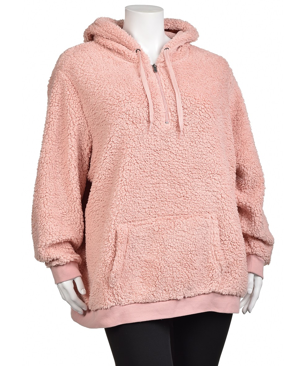 Дамско пухено горнище в прасковено розово, оувърсайз кройка, качулка с връзки и цип, голям кенгуру джоб и ластични маншети. Меко, топло и удобно за всеки ден. Подходящо за студено време и всеки ден!!!