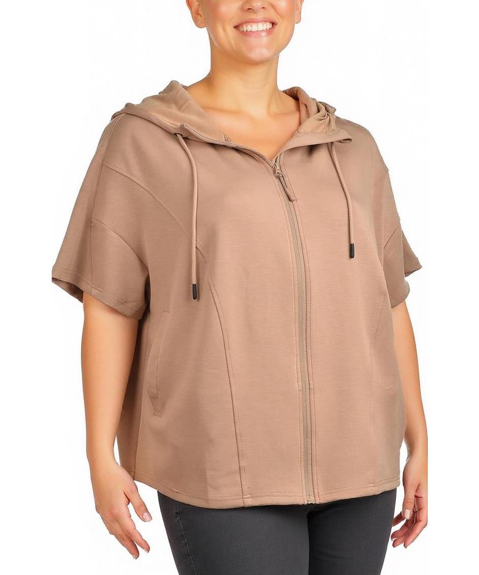 Дамско горнище от вискоза с къси ръкави и качулка. Свободна, удобна кройка с преден цип и скрити джобове. Мек, дишащ материал и ежедневен, универсален бежов нюанс. Лесна поддръжка, идеална за всеки ден.