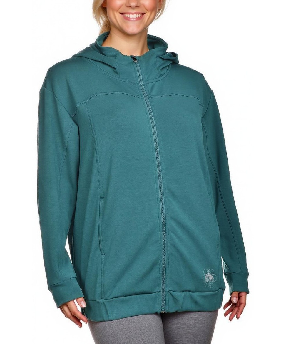 Дамско горнище с качулка и цип в тюркоазено. Свободна кройка, дълги ръкави и джобове. Удобно за спорт и свободно време, изработено от мек, дишащ и еластичен плат. Лесна поддръжка, подходящо за сезон.!