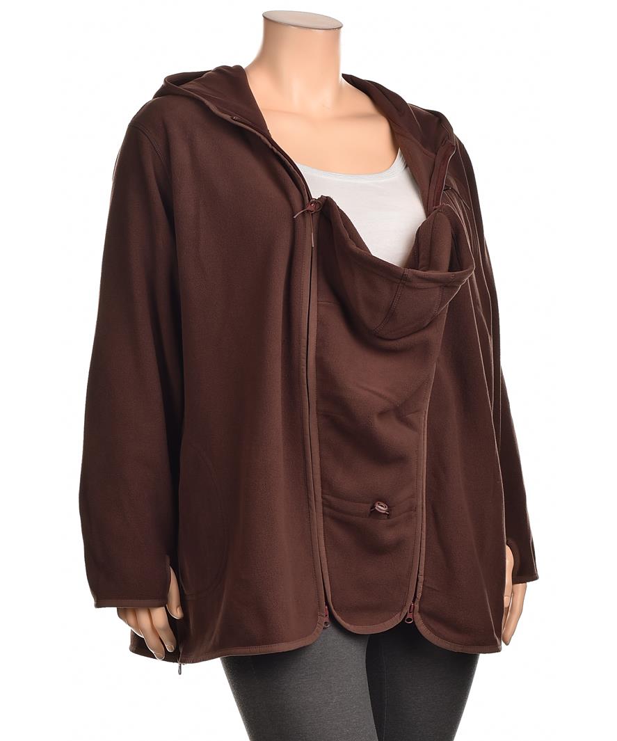 Удобно дамско горнище с приставка за новородено — меко, топло и практично. С качулка, ципове за лесно поставяне, джоб и регулируема предна вложка за безопасно носене на бебето. Подходящо за кърмене.