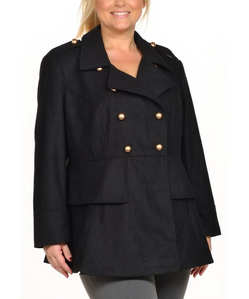Черно дамско вълнено яке с двуредно закопчаване и златисти копчета. Класическа кройка с подчертана талия, широк ревър и предни джобове. Топло, елегантно и подходящо за студените месеци. Идеален избор.