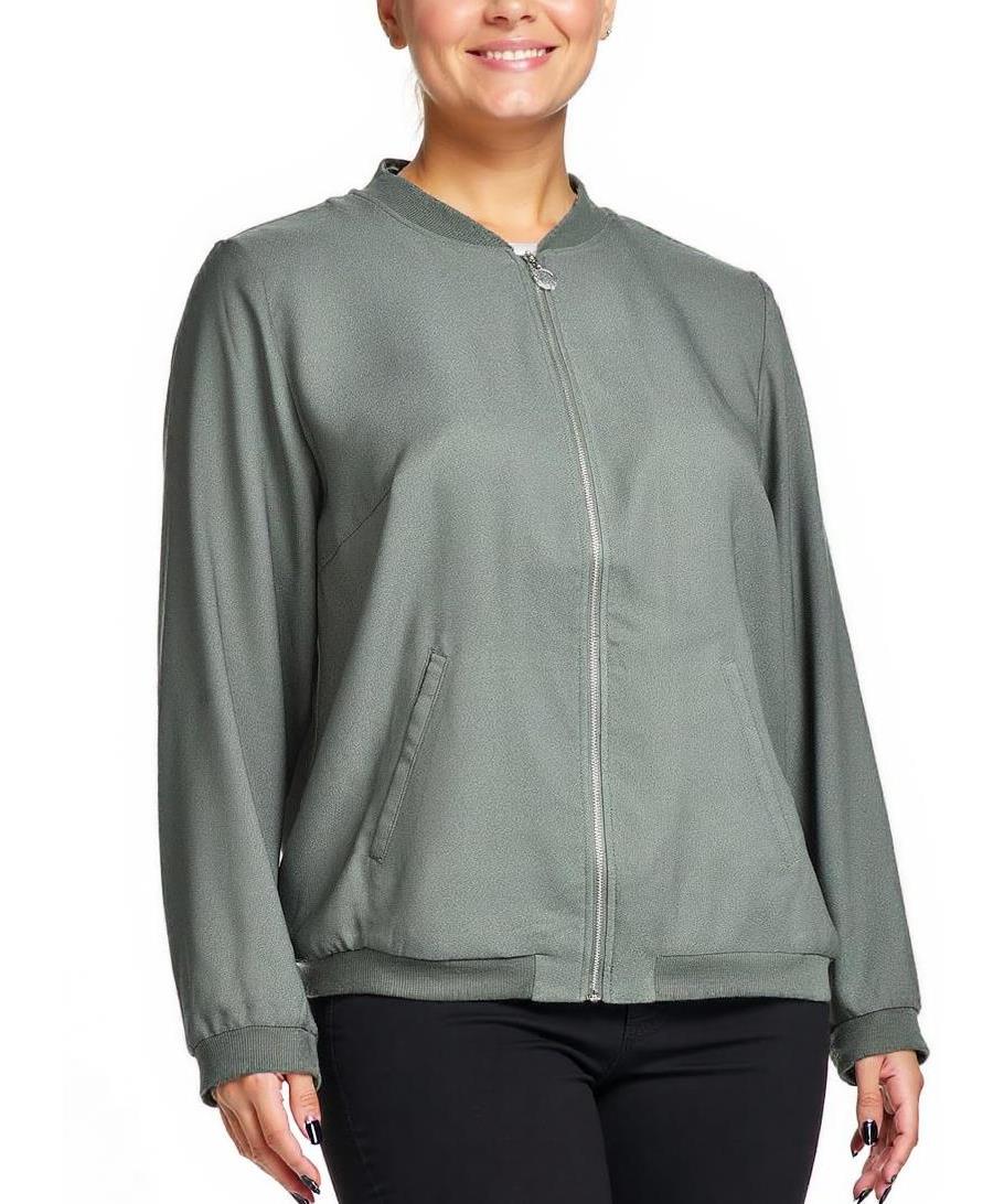 Леко дамско яке в универсален сиво-зелен нюанс, с централен цип, джобове, рипсена подплата на края и ръкавите. Свободна кройка, подходящо за ежедневие и преходни сезони. Практично и лесно за съчетаване!!