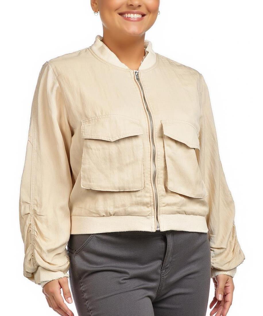 Стилно дамско яке от памук в неутрален тон. Дизайнът включва два големи предни джоба и закопчаване с цип отпред. Удобно и практично, подходящо за ежедневно носене през по-хладните сезони.