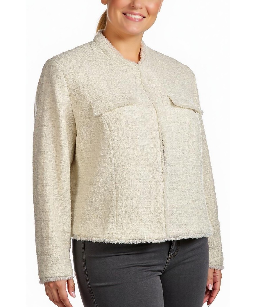 Елегантно дамско вълнено яке в кремав нюанс. Без яка, с дискретни джобове на гърдите, леко текстурирана материя и прав силует. Топло, удобно и подходящо за офис и свободно време. Леко оформено и лесно