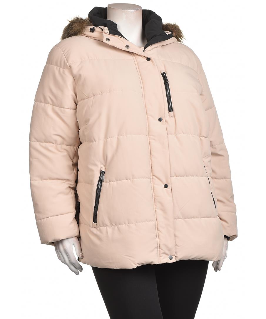 Дамско зимно яке в бледо розово с пухена подплата и качулка с косъм. Две външни цип-джобчета, водоустойчива материя, удобно и топло за ежедневни зимни визии. Подходящо за градски и планински разходки.