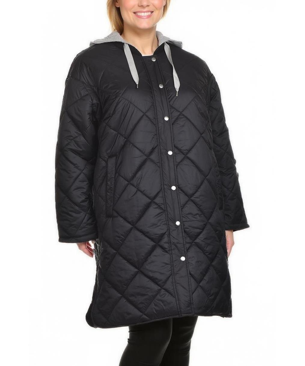 Черно дамско капитонирано яке с качулка, мека подплата и копчета тип тик-так. Свободна кройка до бедрата, странични джобове и практичен стил за ежедневие и преходни сезони. Топло, леко и удобно. Стилен!