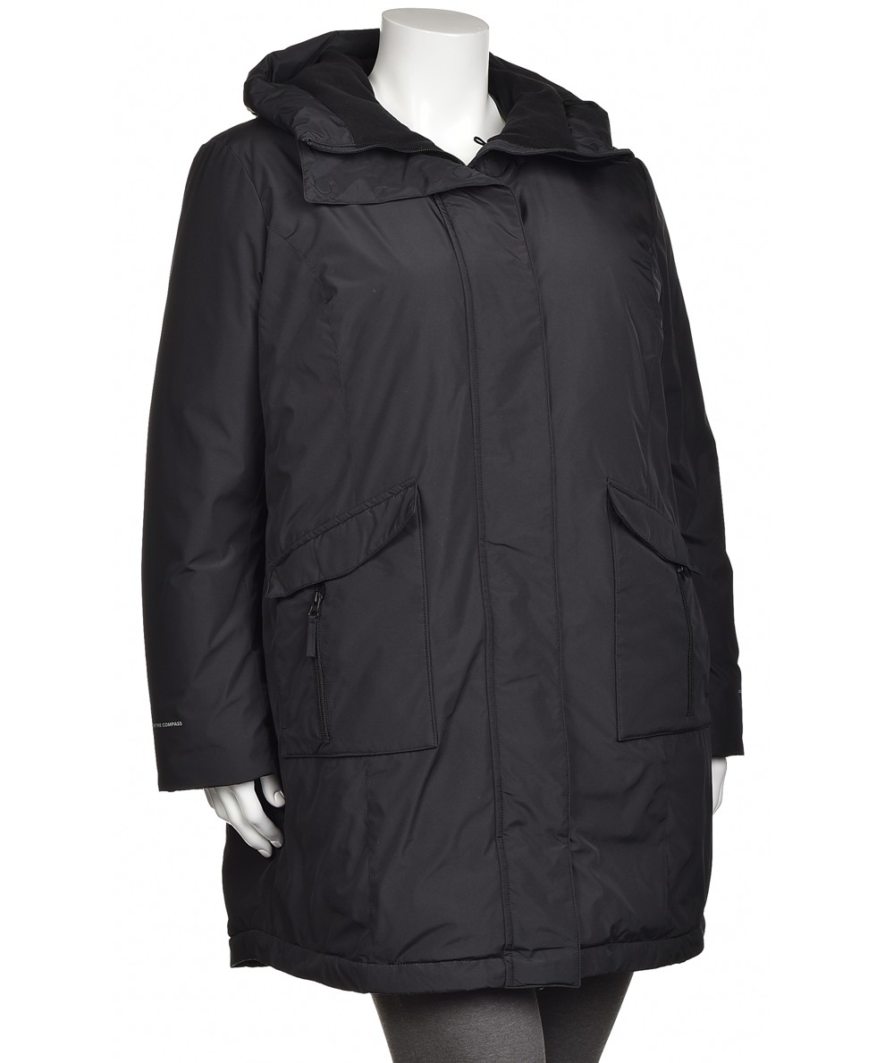 Топло дамско яке в черно, с качулка и средна дължина. Ватирано и водоотблъскващо, с два външни джоба с цип и удобна кройка – стилно и практично за всеки ден.
