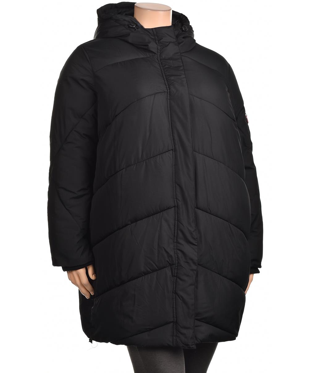 Топло дамско зимно яке в черно с качулка и мека подплата. Свободна кройка, диагонално шито, с цип и джобове. Практично и стилно за ежедневна зимна употреба при ниски температури. Идеално за всеки ден.