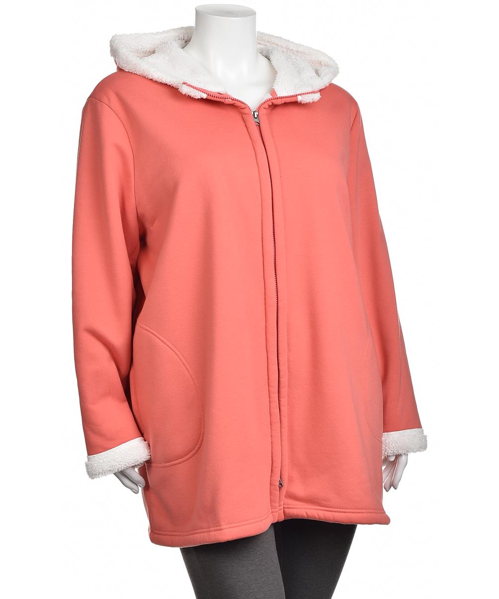 Дамско памучно яке в прасковен нюанс с цип, удобни джобове и хастар от плюш в качулката и ръкавите. Свободна кройка за комфорт и ежедневен стил. Поддръжка: пране в машина. Налични размери S-XXL. Топ 1.