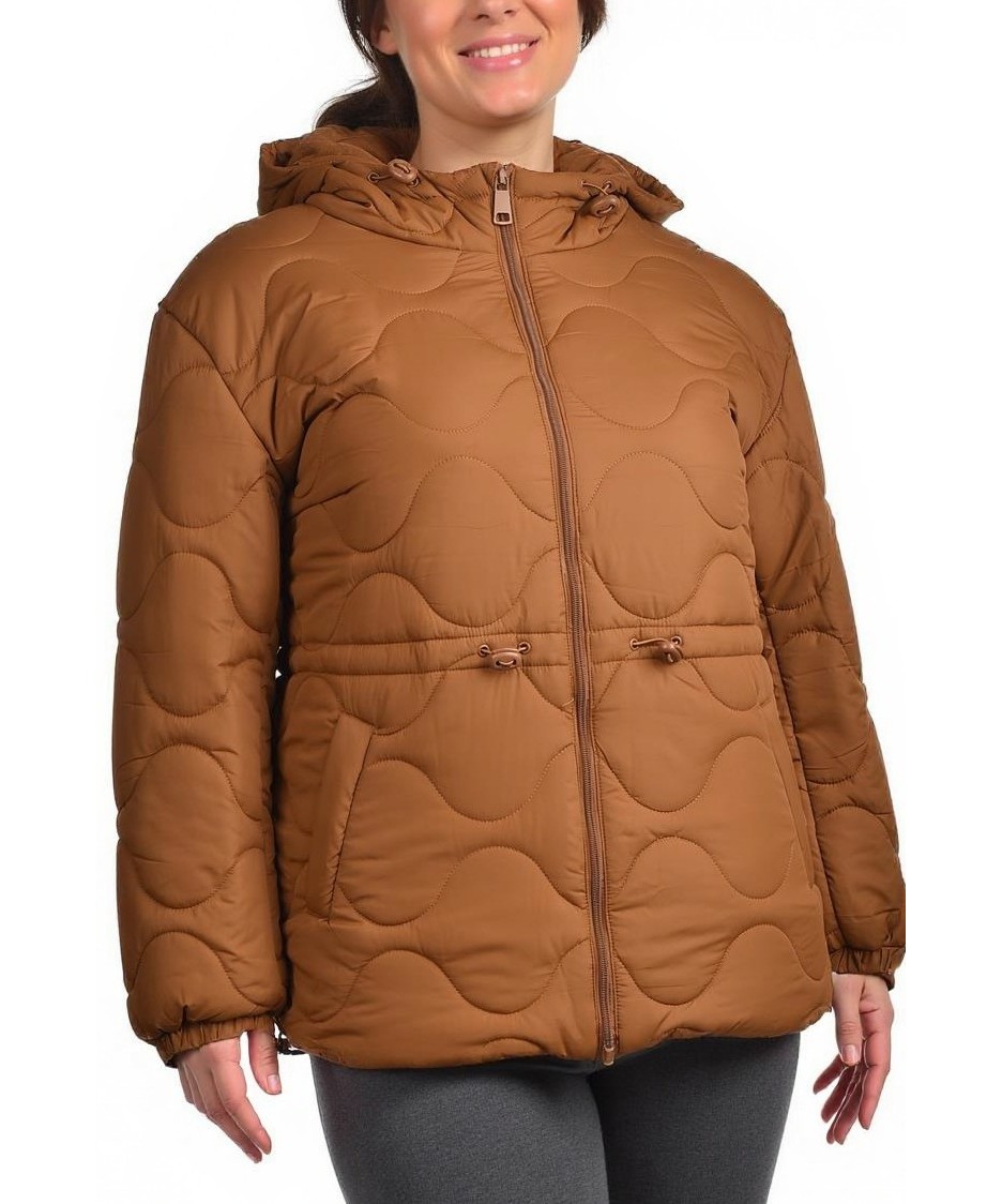 Кафяво дамско пухено яке с качулка, цип и регулируема талия. Удобни джобове, еластични маншети и модерна карамелена визия. Топло, практично и подходящо за ежедневие. Лесно комбинира с дънки и обувки.!