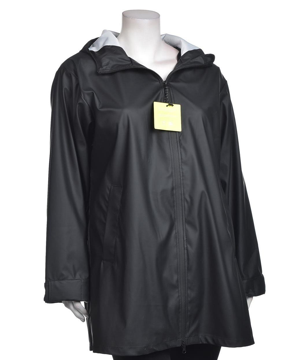 Дамско яке-дъждобран в класическо черно. Водоотблъскваща материя, регулируема качулка, двупосочен цип и дискретни странични джобове. Леко, удобно и практично за дъждовни дни. Вътрешна подплата. Маншет