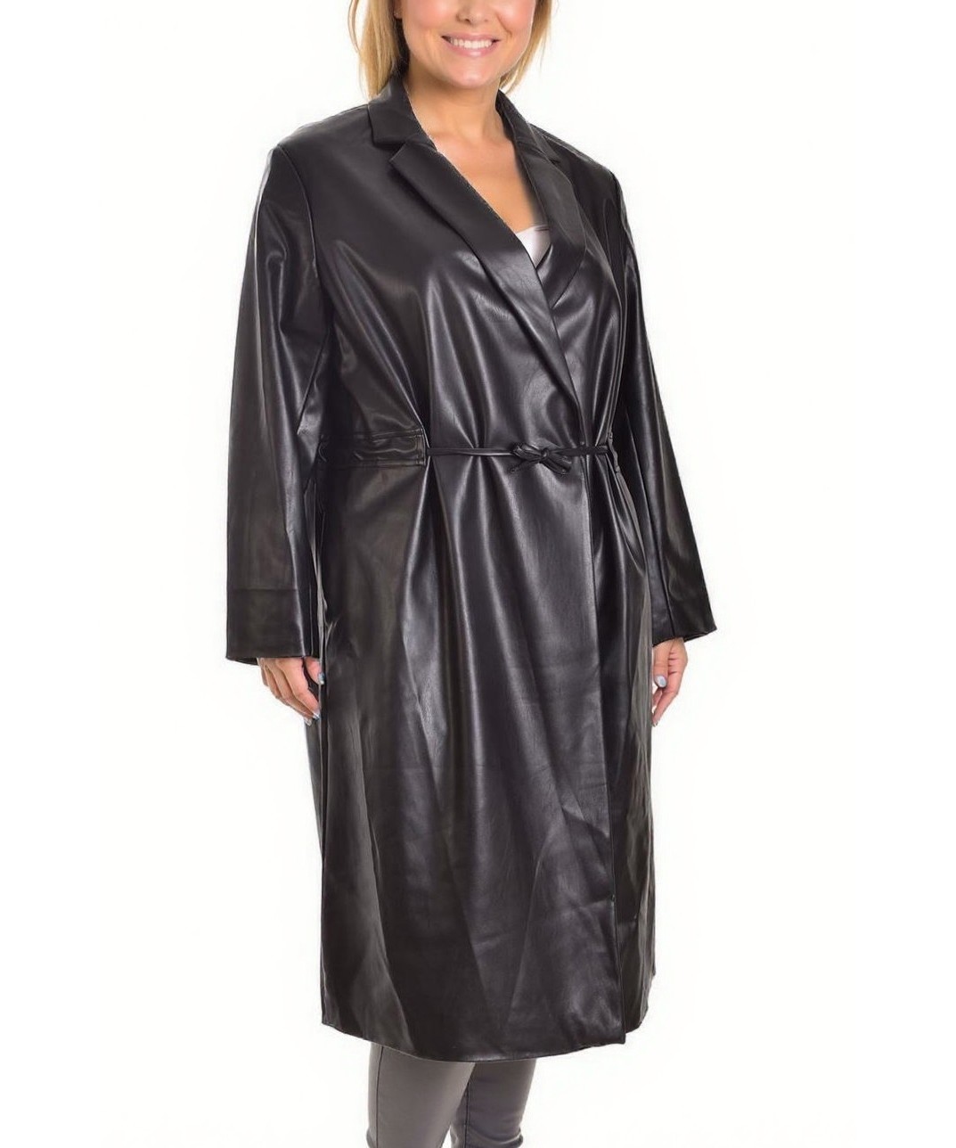 Елегантно дамско яке от еко кожа в черно. Дълго, с ревери и тънък колан на талията. Дългите ръкави и изчистен силует го правят подходящо за всеки ден и вечерни изяви. Подходящо за пролет и есен, лесно.