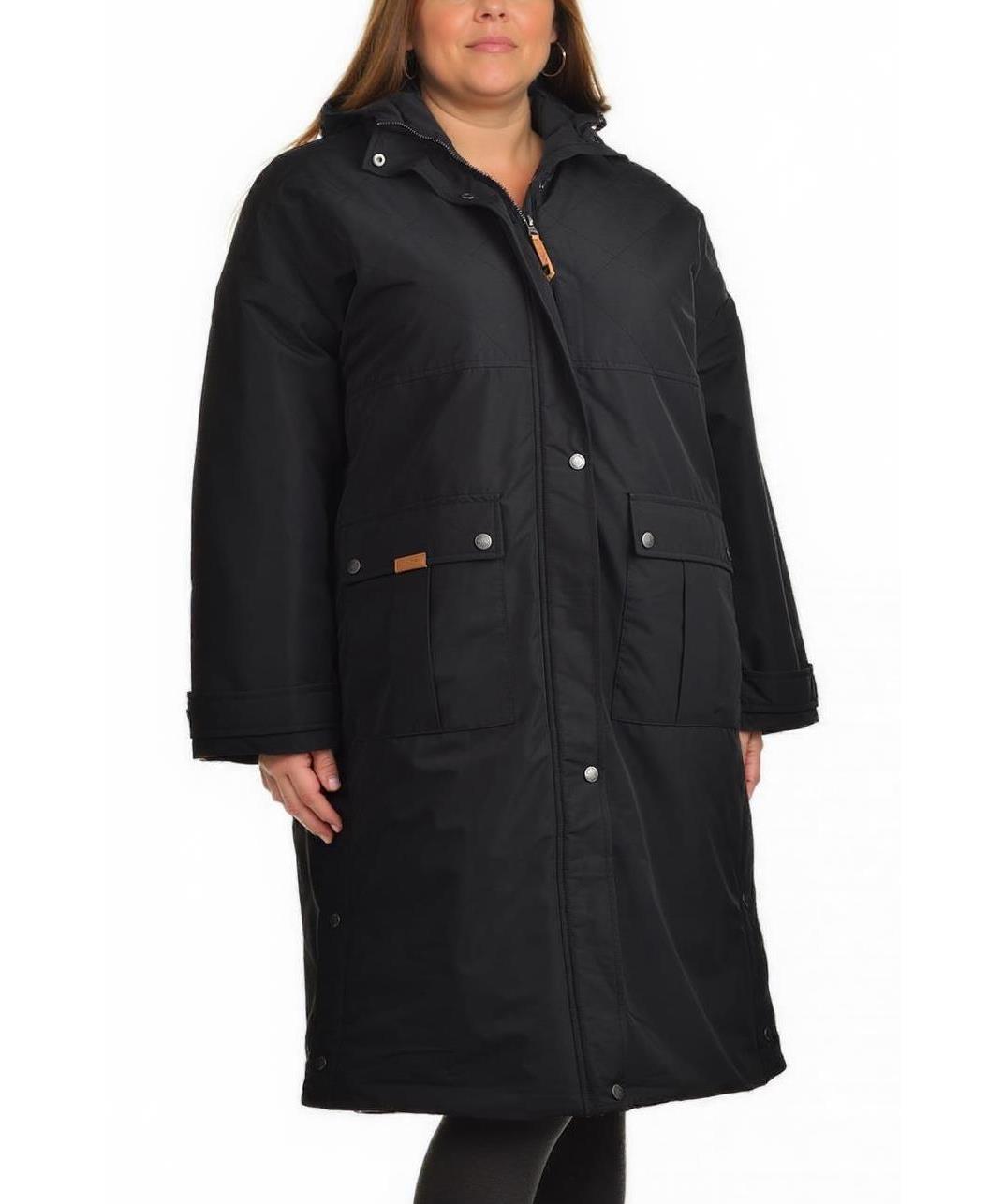 Дълго дамско непромокаемо яке в черно с качулка, цип и копчета, топла подплата и практични джобове. Модерен минималистичен силует, идеално за студено време и ежедневно носене. За град и пътувания, лесно.
