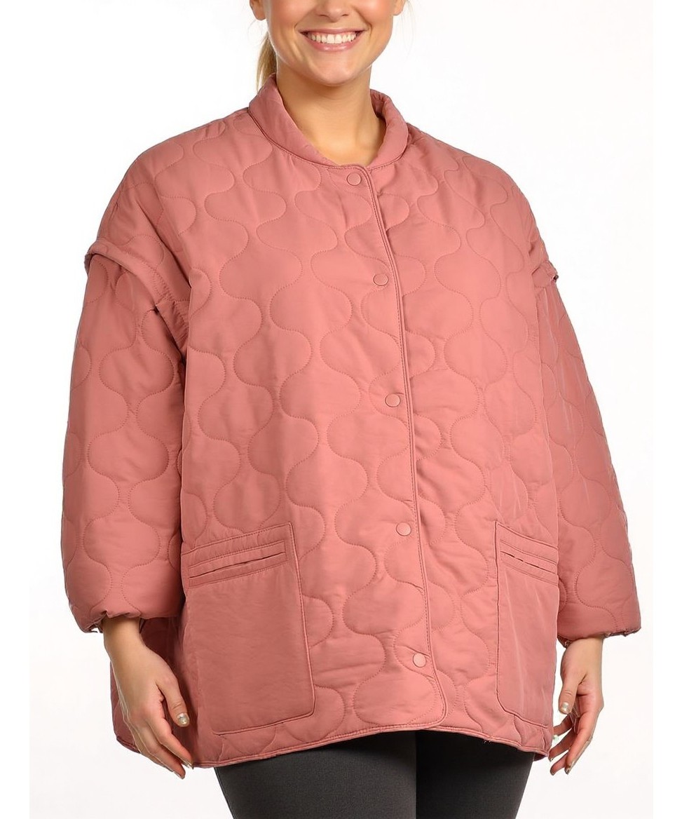 Дамско пролетно-есенно яке в прасковен нюанс, оувърсайз кройка с ватирана квадратно-вълнообразна прошивка, копчета отпред, джобове, мека хастарена подплата — стилно и уютно ежедневно решение. Комфортно.