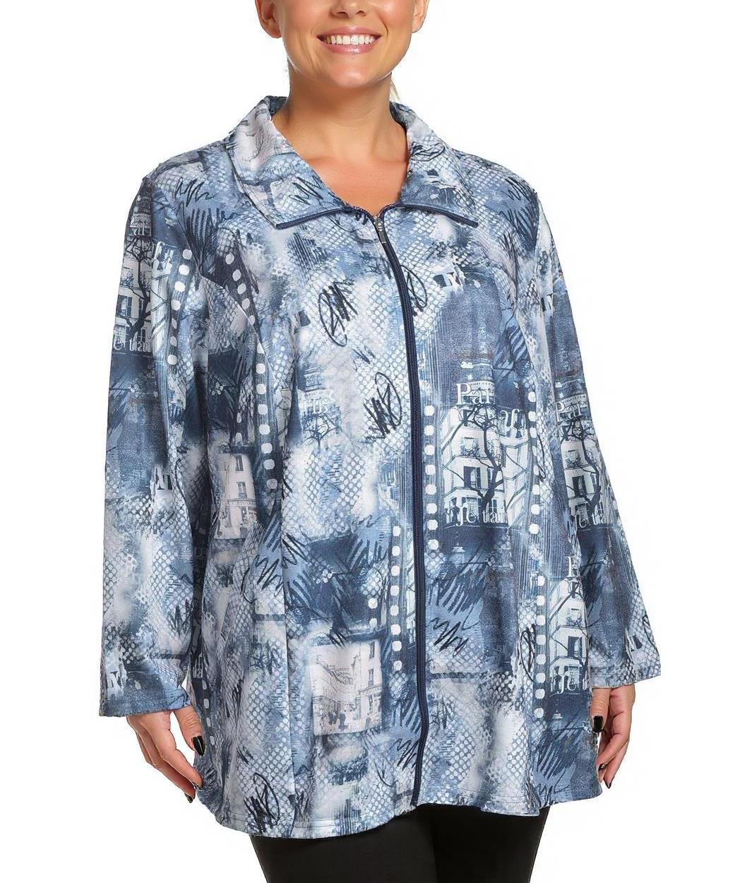 Дамско горнище от памук с оригинален синьо-бял принт, цип отпред и прав силует. Меко, дишащо и удобно за ежедневно носене. Подходящо за разходки, уикенд и свободно време. За комбиниране с дънки и обувки.
