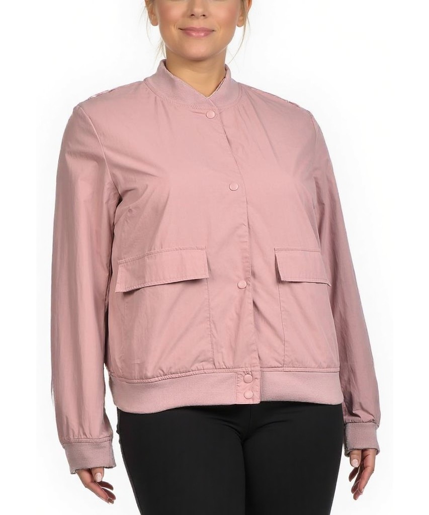 Дамско памучно яке в нежно розово, късо бомбър кройка с прав ревър, тик-так копчета, предни джобове с капаци, ластична талия и маншети. Леко, удобно и идеално за ежедневие. Подходящо за всеки сезон!!