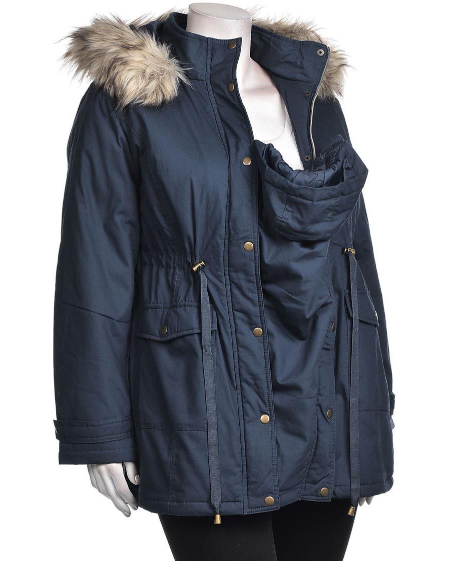 Дамско памучно яке с вградена приставка за носене на бебе. Удобно, топло и стилно, със сваляща се качулка, регулируем пояс, джобове и закопчаване с цип и копчета. Идеално за разходки през студа. Топ.