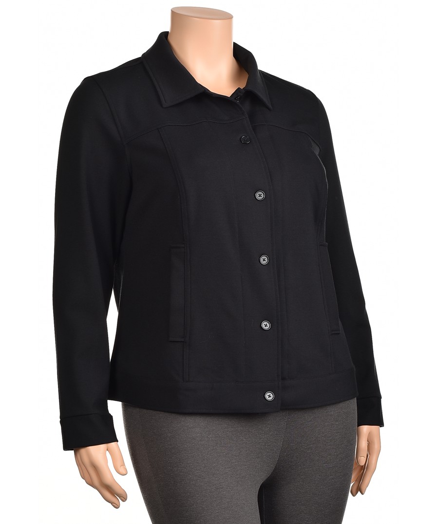 Дамско яке от вискоза в черно. Класическа кройка с яка, дълъг ръкав и закопчаване с копчета. Два странични джоба. Меко и дишащо, подходящо за ежедневие и офис, лесно за комбиниране с дънки и панталон.